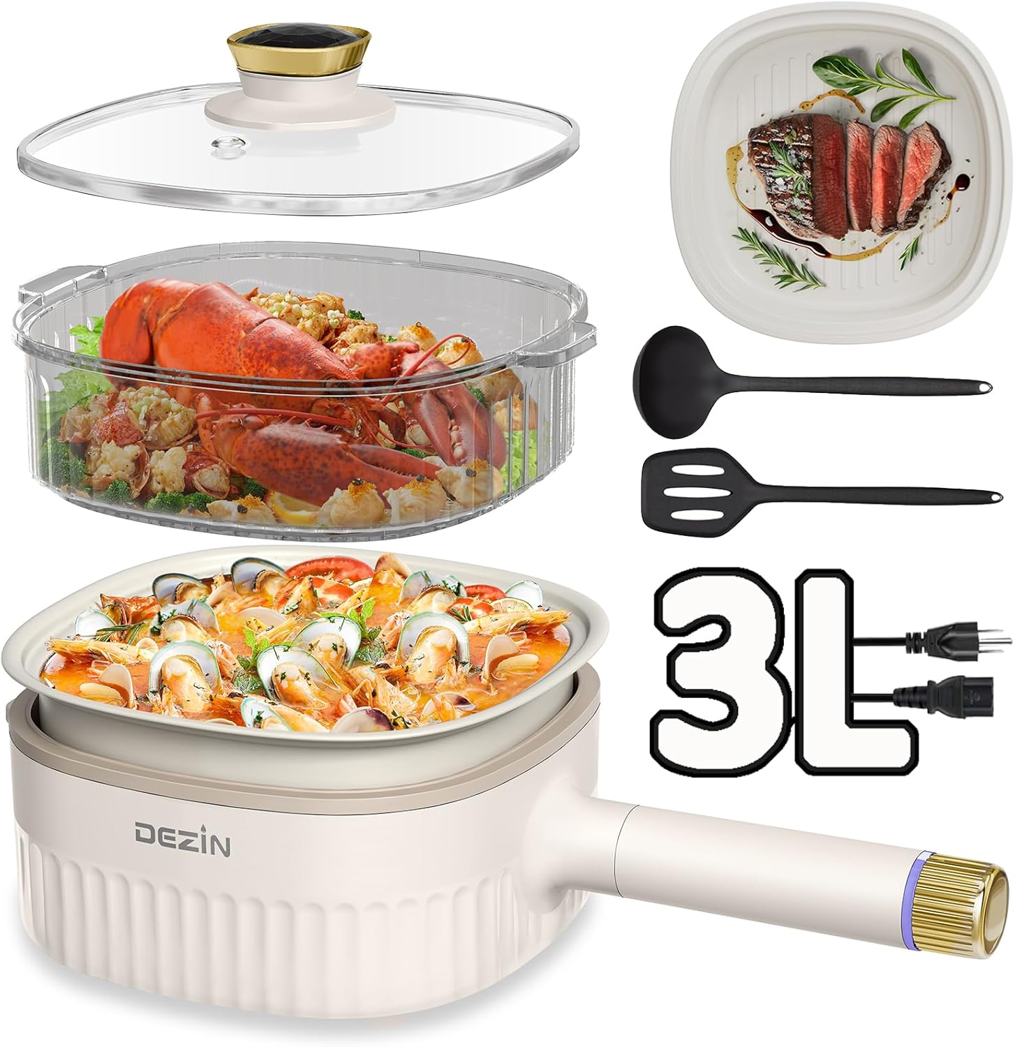 - Hot Pot/Grill Pan/Steamer All-in-One Cooker - Dezin electric pot comes with a grill pan/stock pot/steamer to take your cooking to the next level. This pot can replace most of the cookware. This electric cooking pot is expertly crafted for multifunctional cooking, enabling it to steam above and cook below. Whether you prefer cooking vegetables and meat together or separately, it comes with the removable grill pan/stock pot/steamer offers limitless possibilities.